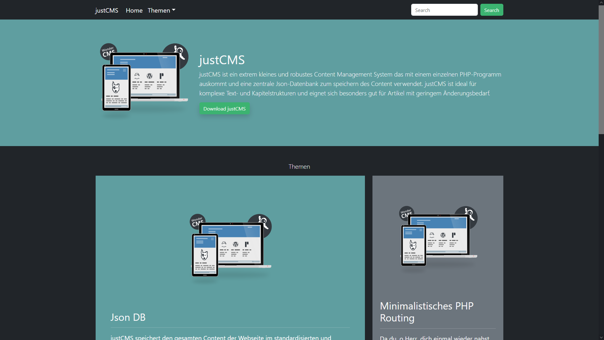 Schalte justCMS einfach mal in den Darkmode um - und viele Beispiele zum Templating mit justCMS